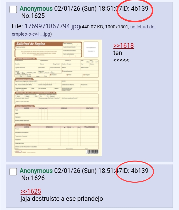 >>1645También lo he visto en otros chanes, lo de la solicitud de empleo y los mismo insultos. Al principio pensaba que solo era coincidencia, pero después de esto es claro que es el mismo.