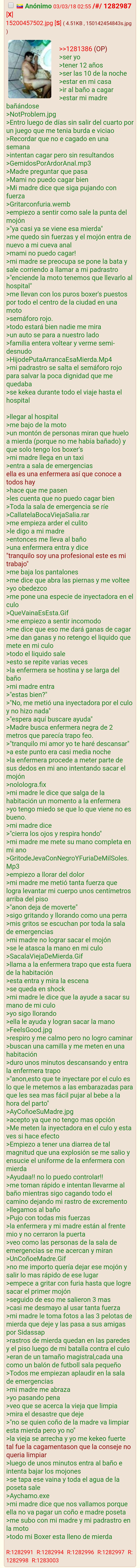 No tengo capturas, pero recuerdo muy bien que un anon hizo un hilo diciendo que no quería seguir viviendo, y pedía recomendaciones de como quitarse la vida de manera efectiva.